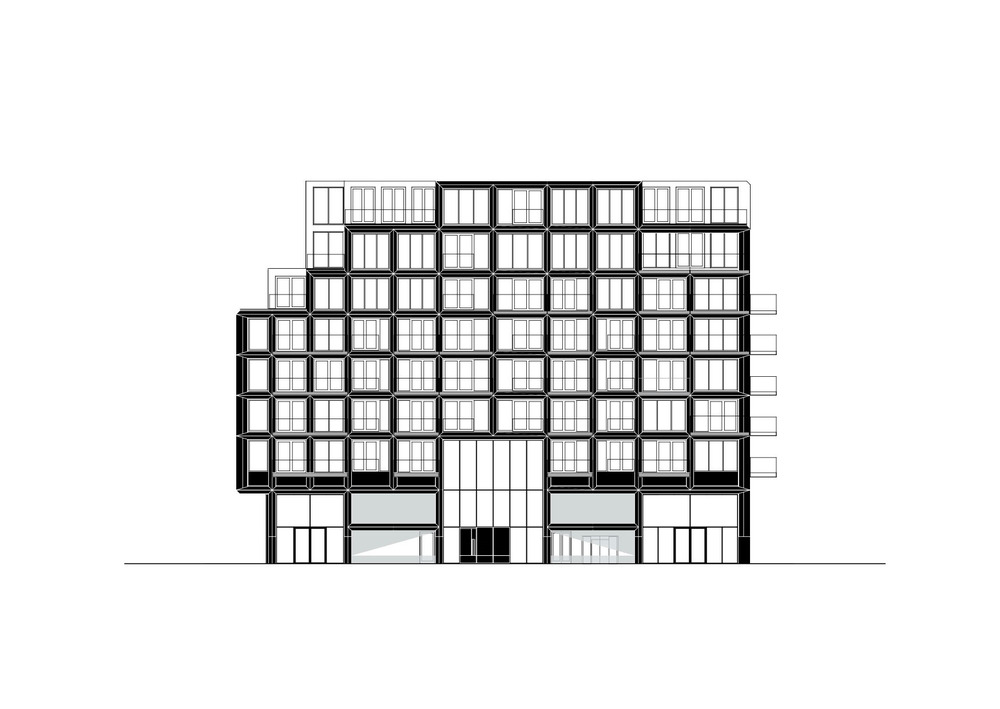 Fasad Mercado adalah karya masterpiece yang terbuat dari elemen-elemen keramik, kolaborasi antara De Zwarte Hond, Loer Architecten, NBK, dan Bijlbouw. Glazur biru-hijau, yang dipilih dengan hati-hati melalui sampel dan mock-up, beradaptasi dengan kondisi cuaca yang berbeda, menambahkan sentuhan artistik yang mengingatkan pada kekayaan sejarah dan arsitektur pascaperang Groningen. Tanah liat beige dan glazur semi-transparan Mercado berharmoni dengan bahan Weeshuis yang berwarna pastel dan blok material pascaperang.